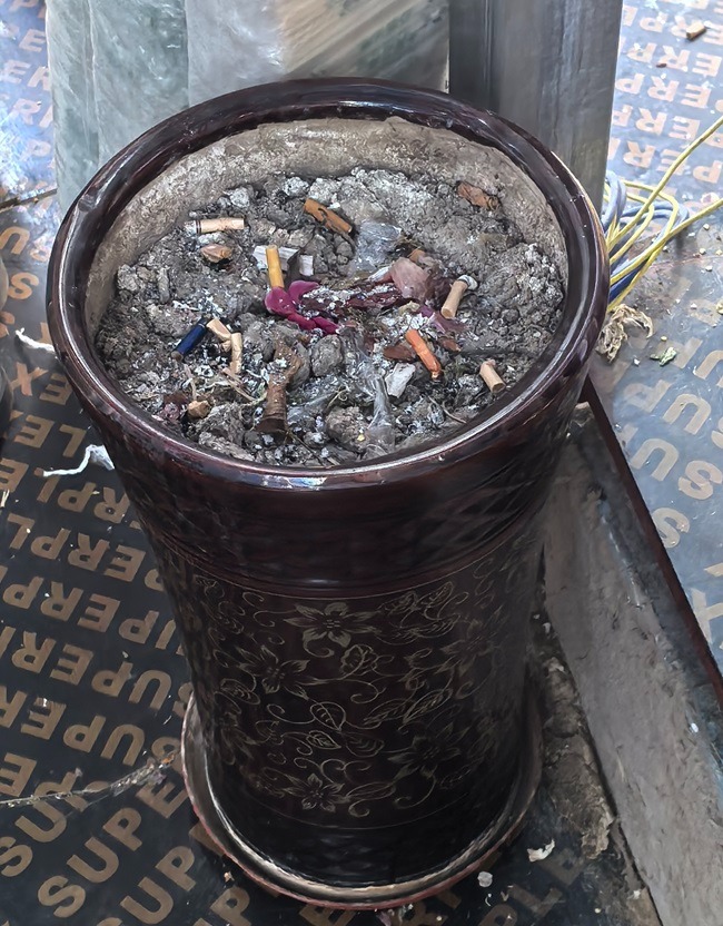 二楼储物间内液化气瓶附近花盆内发现的烟头