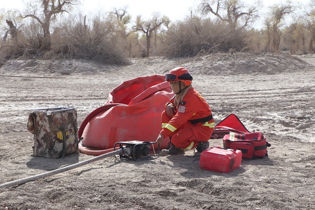 为切实筑牢胡杨林区生态安全防线,提升消防救援队伍与林草部门应急协同作战能力,高效应对林区突发火灾险情,4月15日,乌鲁木齐消防救援机动支队库尔勒大队参加巴州“应急使命·2026”抗震救灾实战综合演练。库尔勒大队轮台驻防分队联合当地林草局应急分队,在辖区胡杨林区开展灭火实战演练,以实战化演练锤炼应急救援本领,全力守护胡杨林生态资源安全。