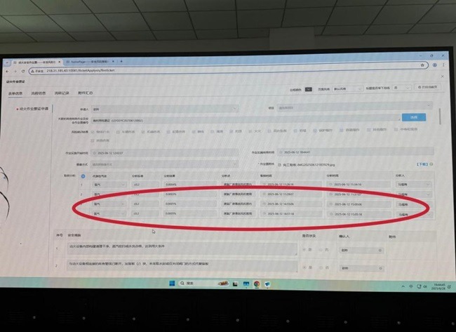 “在液氯厂房进行动火作业,怎么不对氯气进行检测?”在伊犁南岗化工有限责任公司检查时,专家对企业提供的2025年6月12日开具的编号为DHZYLJC202506120004的动火作业票产生了质疑。
