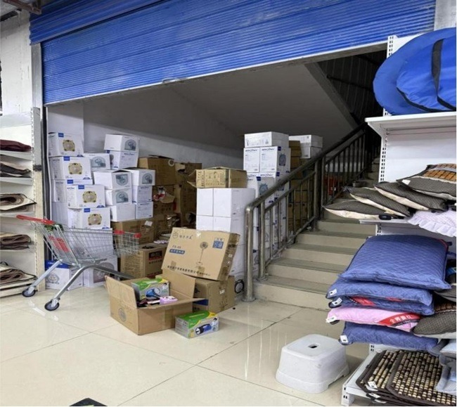 商场、集贸市场等人员密集场所消防安全是检查的重点之一。考核巡查组以“四不两直”方式检查了铁门关市鑫恒泰商贸中心,该中心地处城市中心地带,内有超市、KTV餐吧、酒店等多家商铺。记者跟随考核巡查组来到该中心地下一层的铁门关市兵哥遂州超市,发现超市面积约1800平米,未做防火分区分隔。