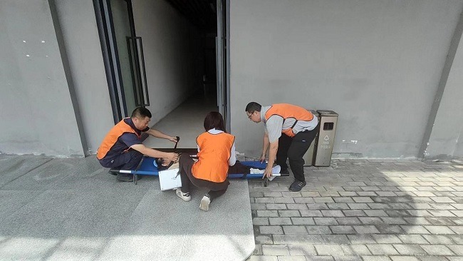 比赛伊始,首先进行“安全演习我来演”,参赛队伍共同协作在模拟真实场景进行消防应急救援。模拟科技兴海北门停车位区域内发生电动车自燃火警。根据火灾事故的发展状态,参演队伍立即启动乾信公司消防应急预案,拨打消防报警电话,启动警铃、消防广播引导市场人员进行疏散,对疏散过程发生的伤员实施简易救护处理,组织义务消防员对初始火灾进行灭火扑救,锻炼员工的应急处置能力和团队协作能力,最大限度地保障了人员、财产的安全。