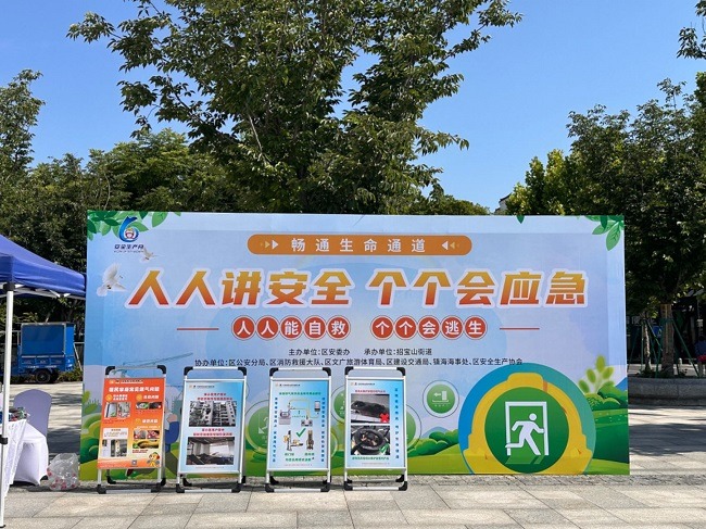 6月18日上午,浙江省宁波市镇海区应急管理局联合招宝山街道、区综合行政执法局、区公安分局、区消防救援大队、区文广旅体局、区建设交通局、镇海海事处、安全生产协会等单位,开展了以“人人讲安全、个个会应急——畅通生命通道;人人能自救、个个会逃生”为主题的“安全生产月”广场宣传活动,面向广大群众进行安全生产知识交流、应急技能传授等现场互动。