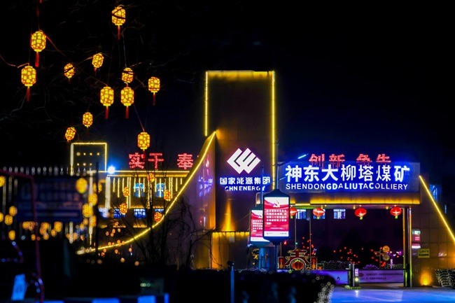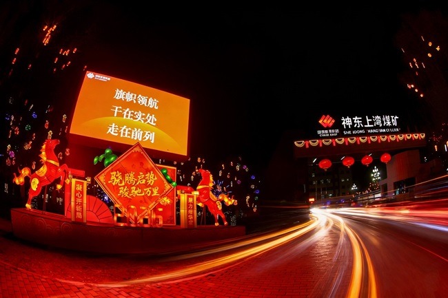彩灯映衬下的国家能源集团品牌愈发清晰,激励着神东人在新的一年不断前进。
