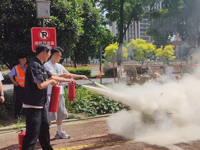此次活动通过现场理论授课和实战演练让大家深刻感受消防安全的重要意义。活动伊始,消防安全培训老师为大家讲解了火灾的常见成因、灭火器材的正确使用方法等消防安全知识。他结合近年来发生的火灾案例,详细阐述了防火、灭火、疏散、逃生、自救等方面的技巧和要点,并着重强调了火灾对社会的严重危害。针对高楼大厦的具体环境,他还特别指出了防火工作的重点,并指导大家如何正确认识和使用消防器材。