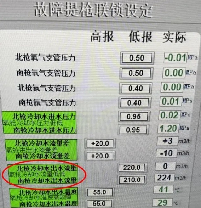 转炉氧枪自动升起未与氧枪冷却水进水流量监测报警装置联锁